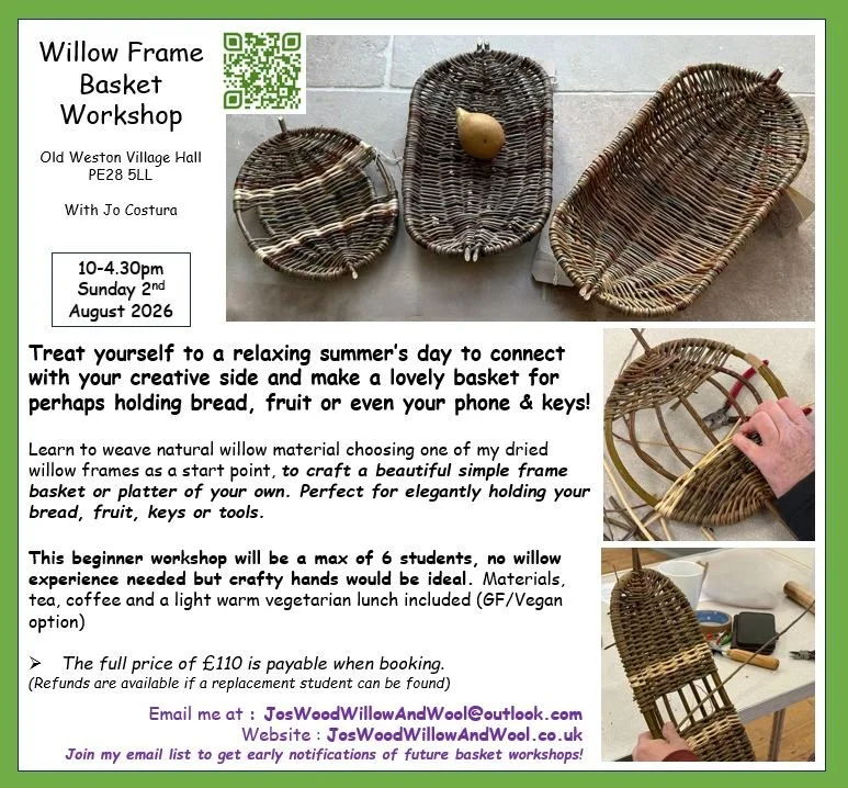 Learn to weave natural willow material choosing one of my dried willow frames as a start point, to craft a beautiful simple frame basket or platter of your own. Perfect for elegantly holding your bread, fruit, keys or tools.